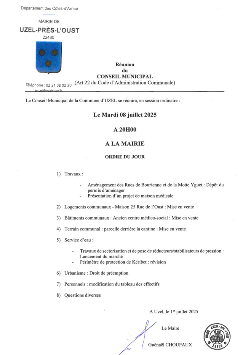 Prochain conseil municipal le mardi 8 juillet à 20h.