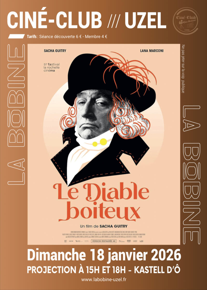 Le Ciné-club La Bobine vous propose deux projections du film « Le Diable Boiteux » le dimanche 18 janvier à 15h et 18h.