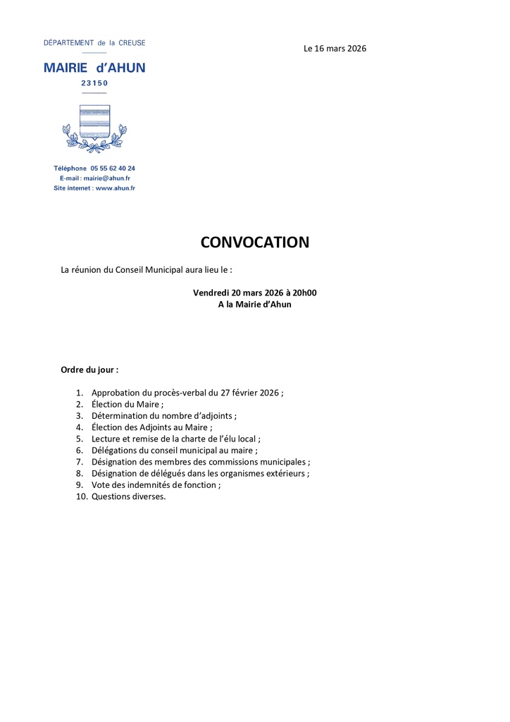 / Convocation - Conseil Municipal du 20 mars 2026