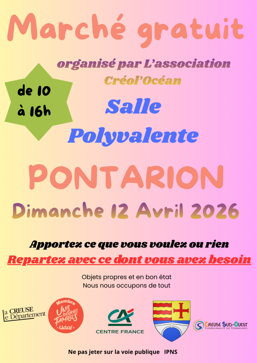Marché gratuit le 12/04/2026 à Pontarion.