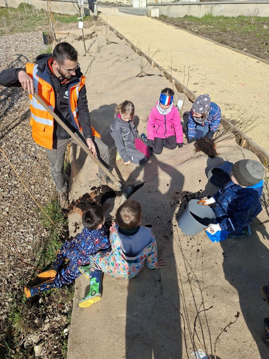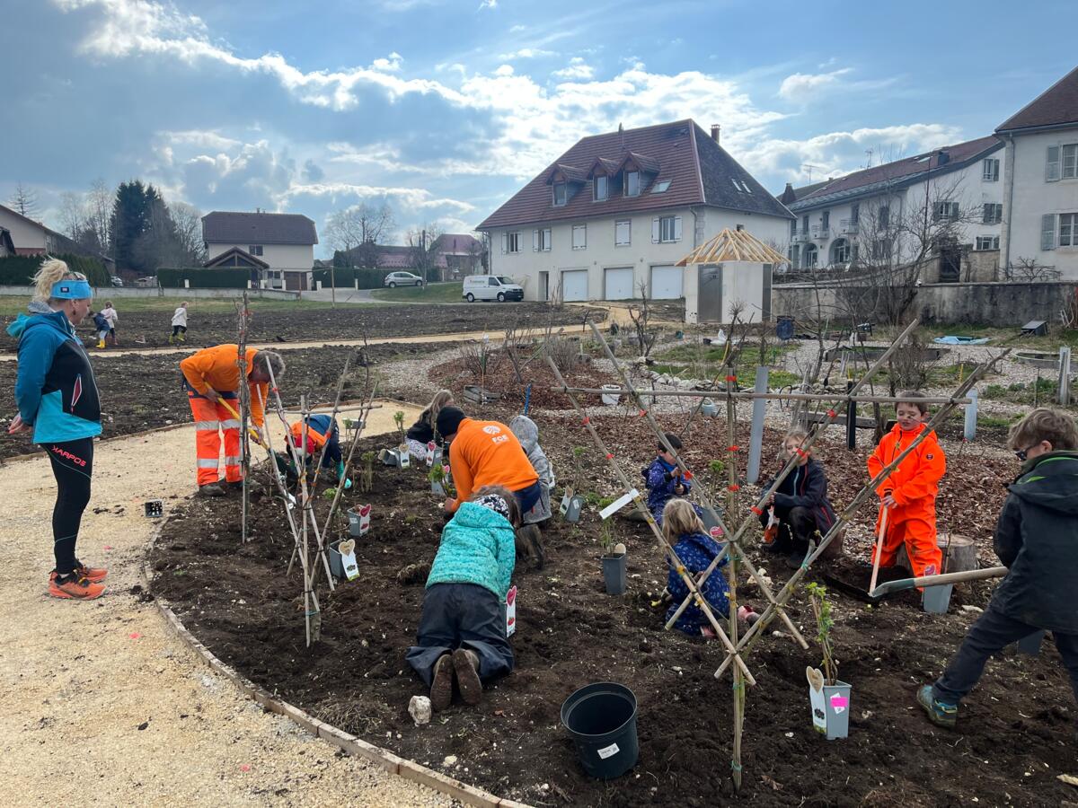 Chaque classe a consacré une 1/2 journée à la plantation d’arbres et arbustes.