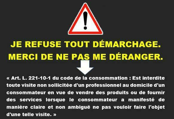 Vous pouvez aussi vous opposer au démarchage à domicile en le signalant par un affichage clair.