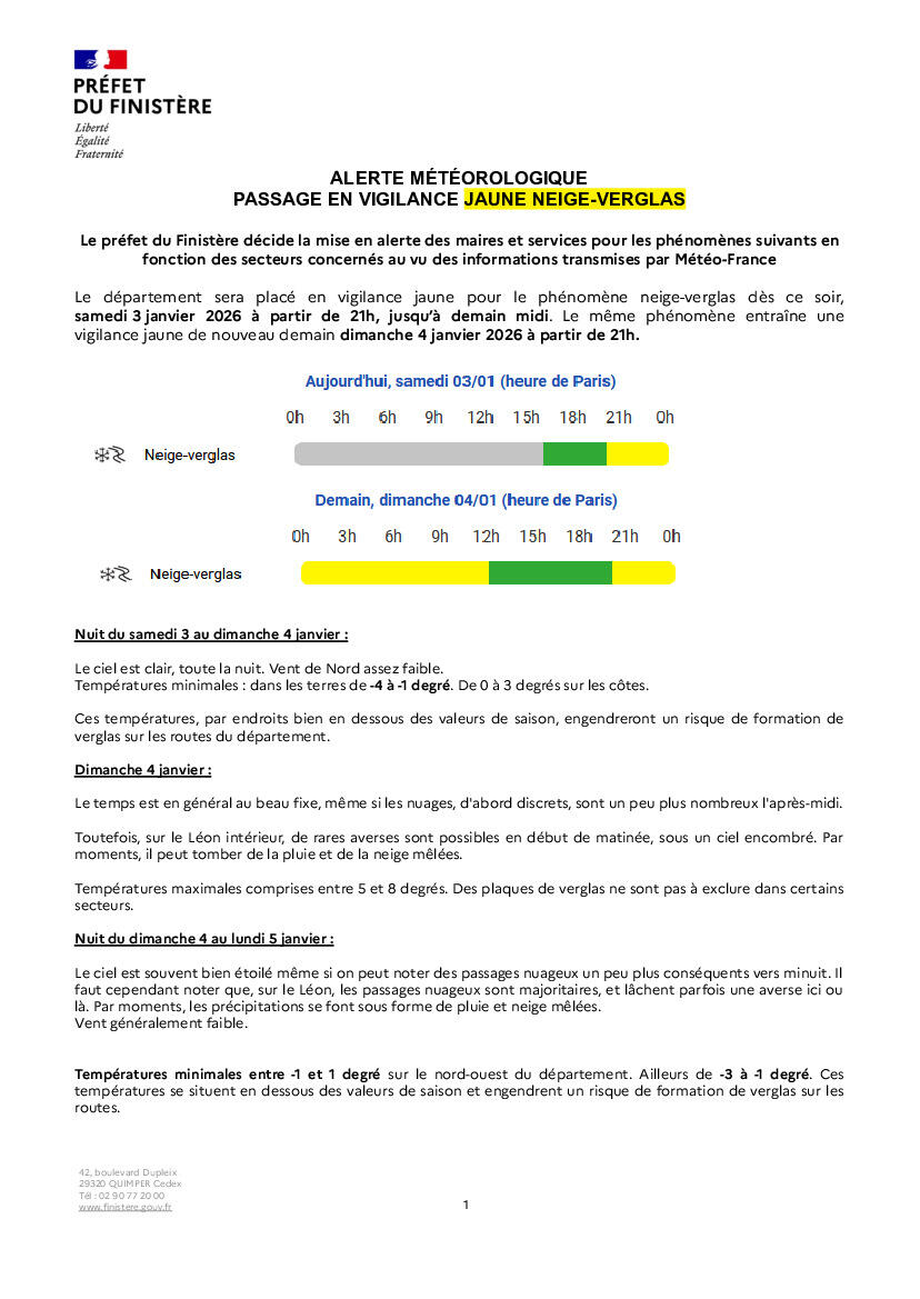 ALERTE METEO : VIGILANCE JAUNE NEIGE-VERGLAS