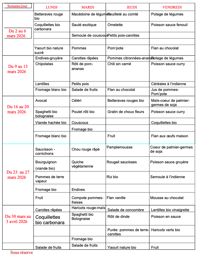 Votre mairie / Actualités / Menu de la cantine