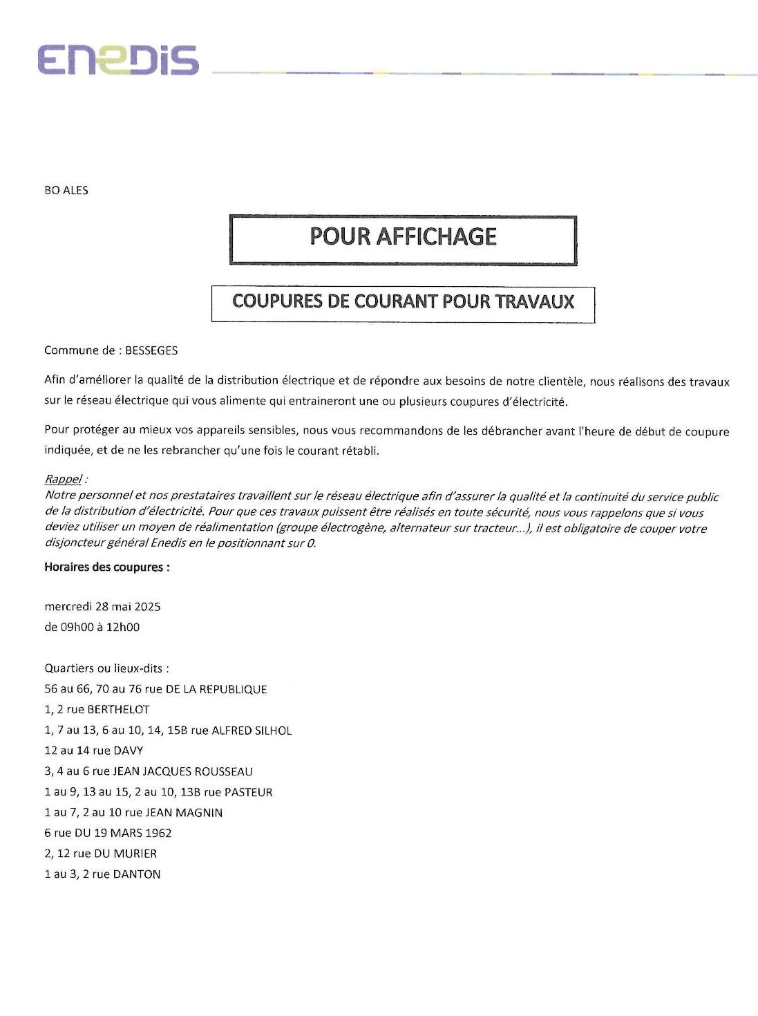 / Coupures de courant pour travaux