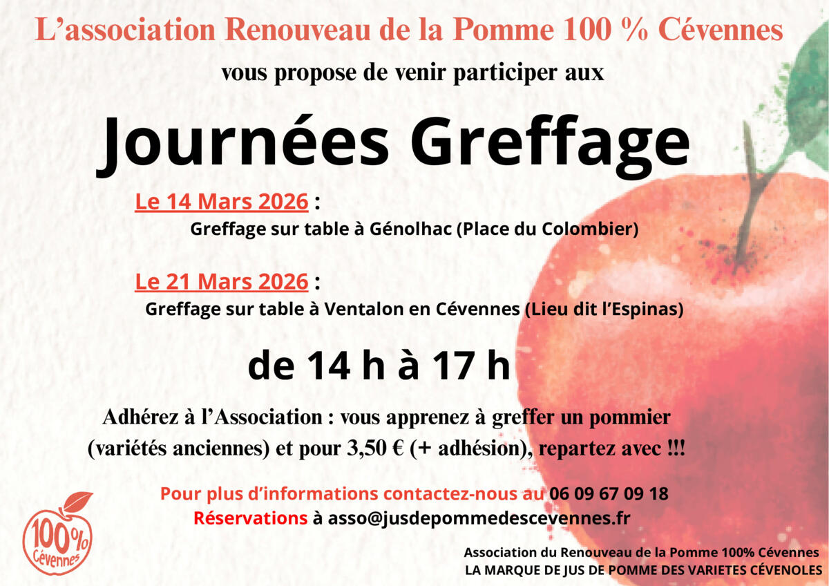 association Renouveau de la pomme 100% Cévennes 26-03-12 Journées Greffage sur Génolhac le 14 mars 2026