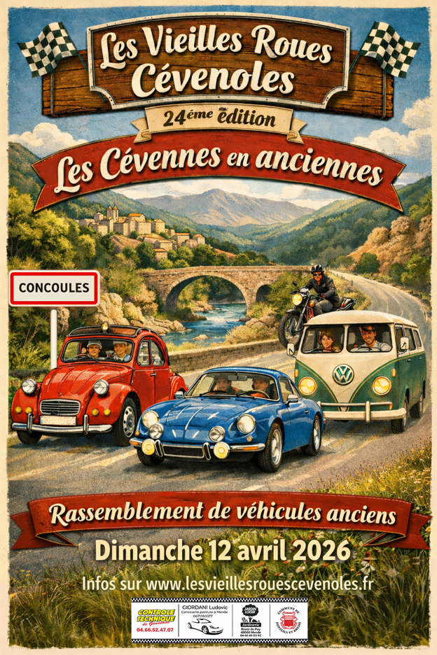 les vieilles roues cévenoles 26-04-04 De 9H00 à 10H00 a la salle polyvalente de Concoules Source : Mairie de Concoules