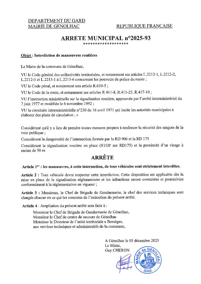 Arrêté municipal - intersection formée par la RD906 / RD175