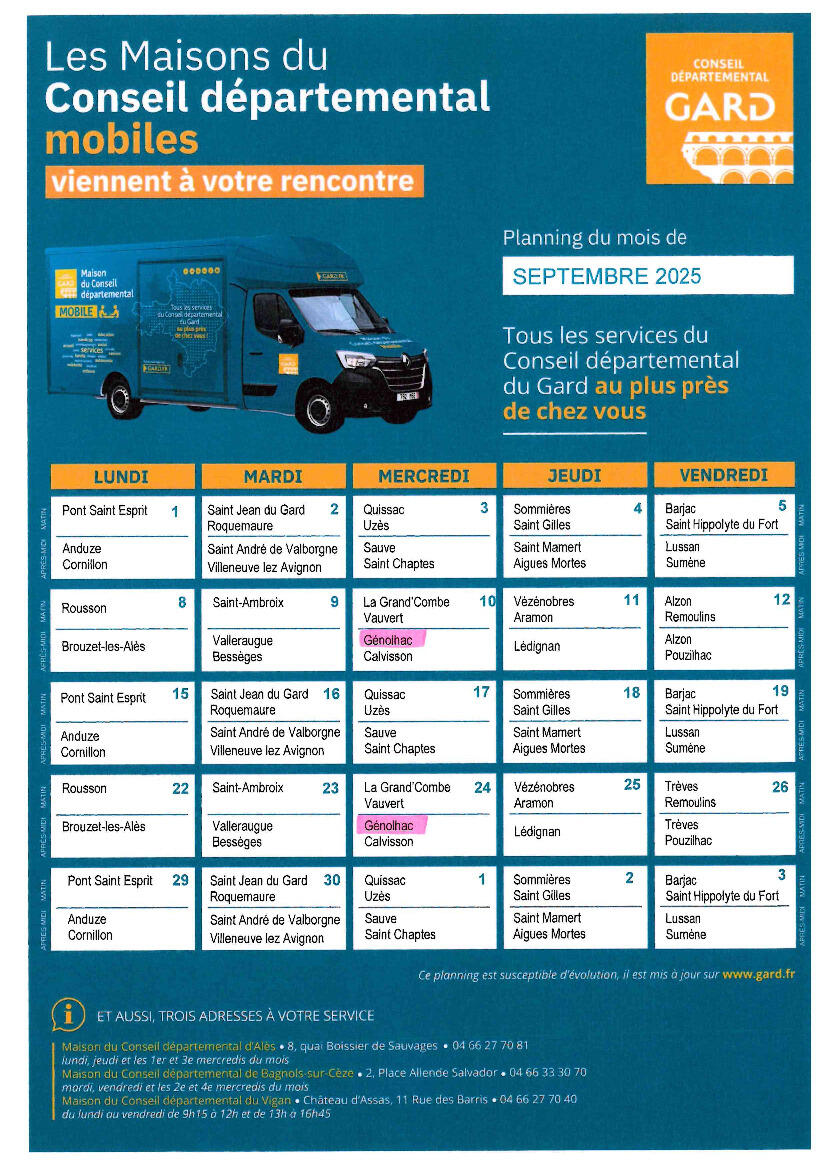 Planning du mois de septembre 2025