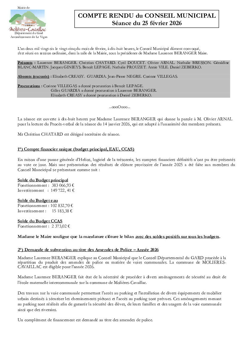 Compte rendu du dernier Conseil municipal de la mandature