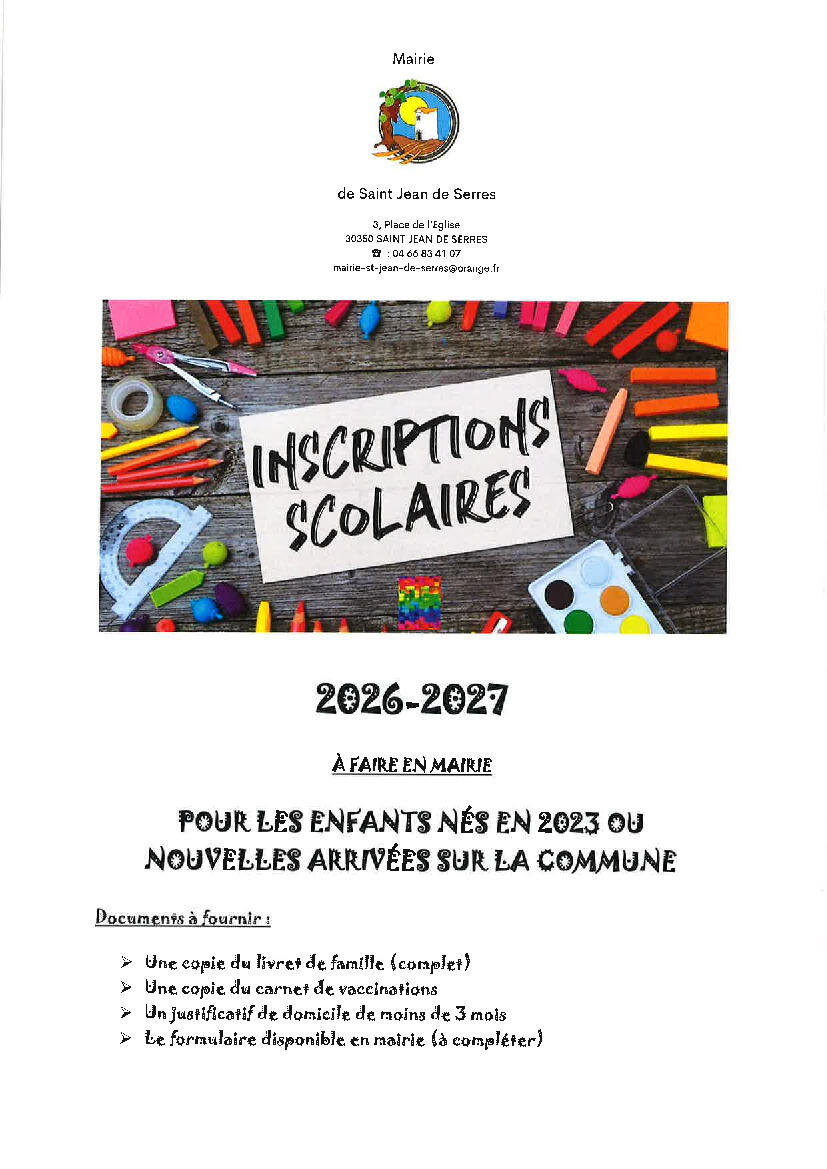 INSCRIPTIONS SCOLAIRES -2026/2027