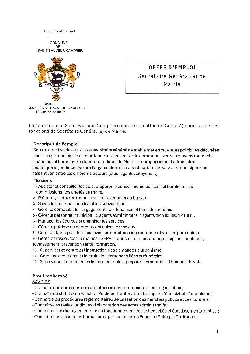 La mairie de ST SAUVEUR -CAMPRIEU recrute