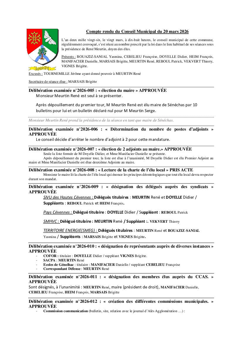 Toute l'actualité de Mairie de Sénéchas