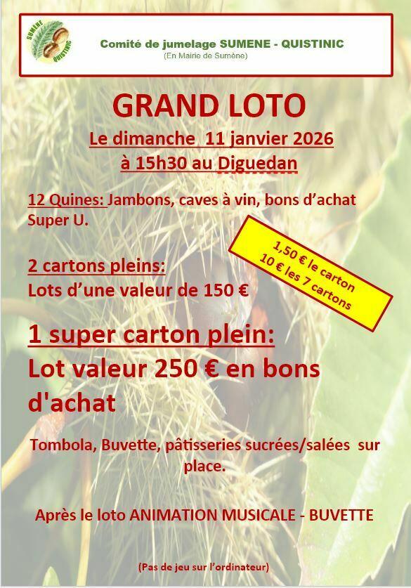 Loto du Comité de Jumelage SUMENE/QUISTINIC 26-01-08 Dimanche 11 janvier 15 h 30 Source : Mairie de Sumène