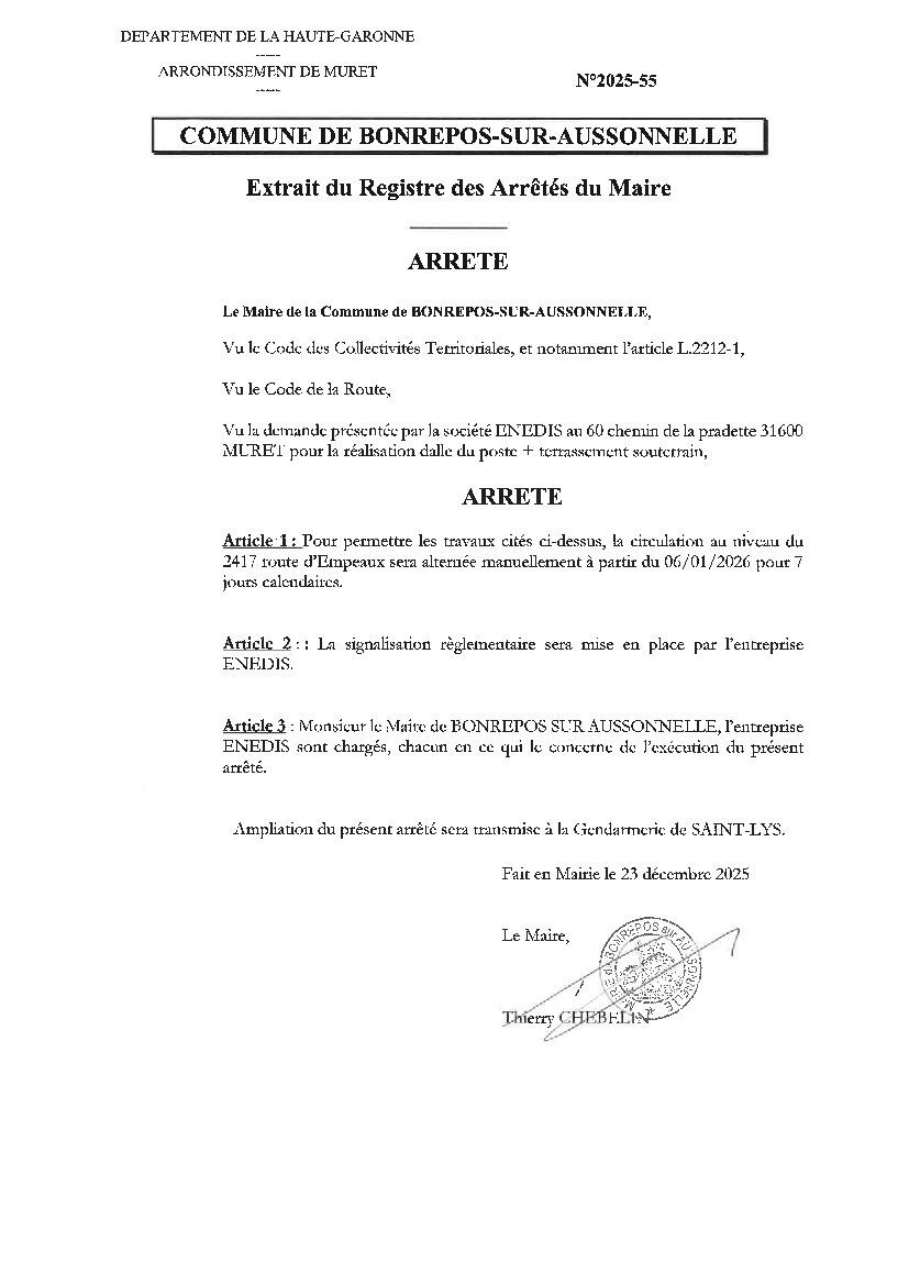 Travaux route d'Empeaux du 6 au 13 janvier