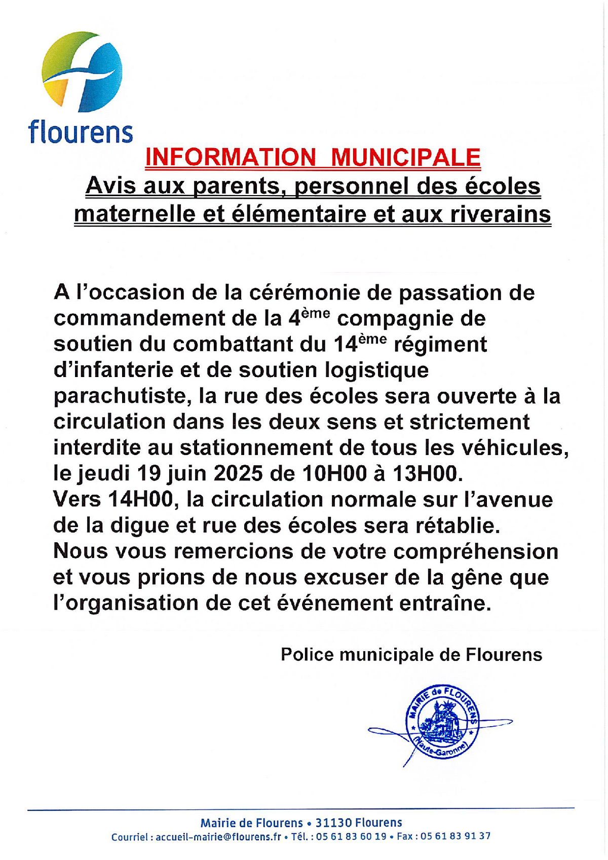 / info circulation et stationnement jeudi 19 juin