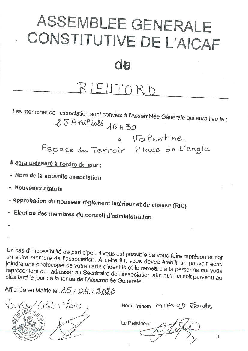 Assemblée générale de l'AICAF du Rieutord - à Valentine