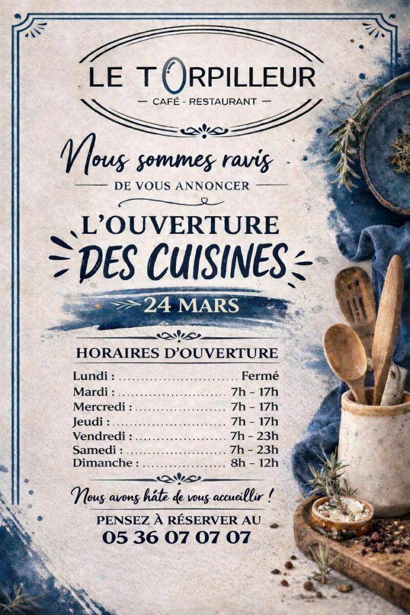 Votre mairie / Actualités / HORAIRES D'OUVERTURE DU TORPILLEUR