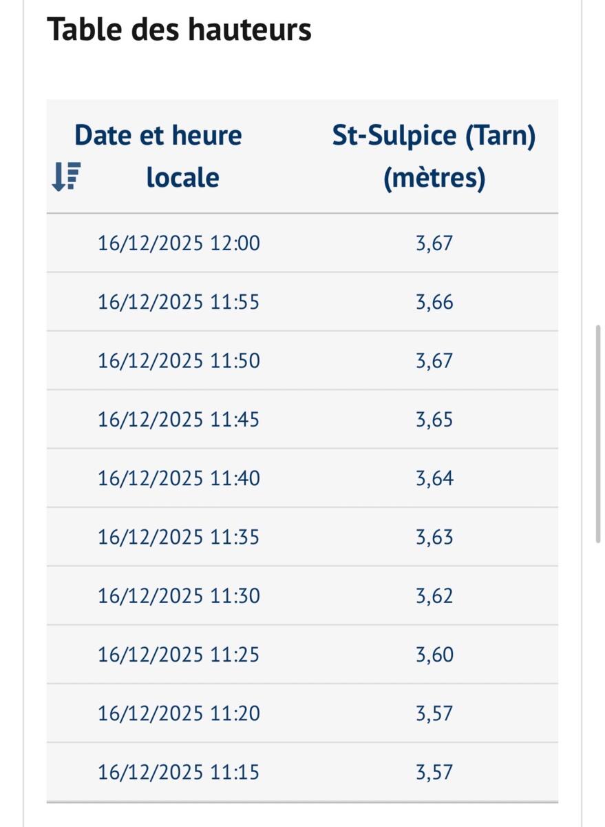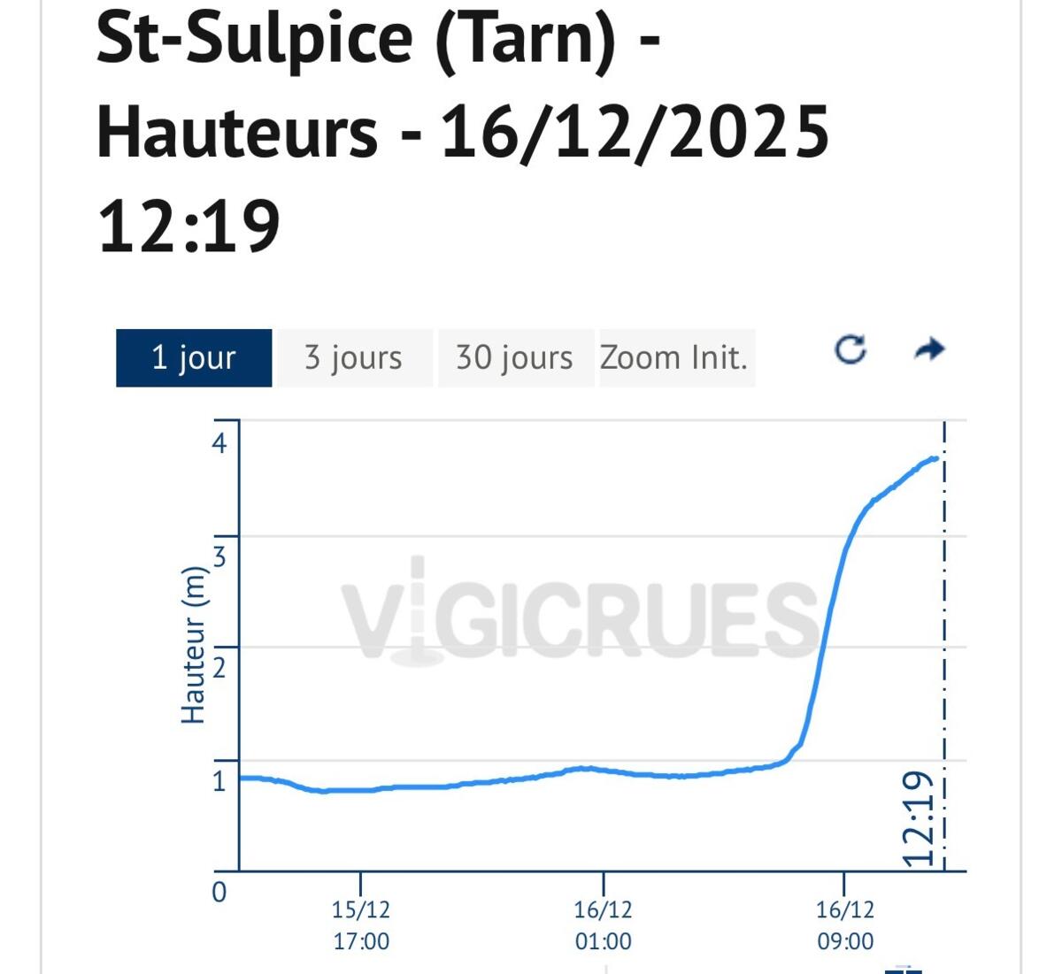 La rivière Le Tarn – tronçon Tarn Moyen est actuellement placée en vigilance crue.