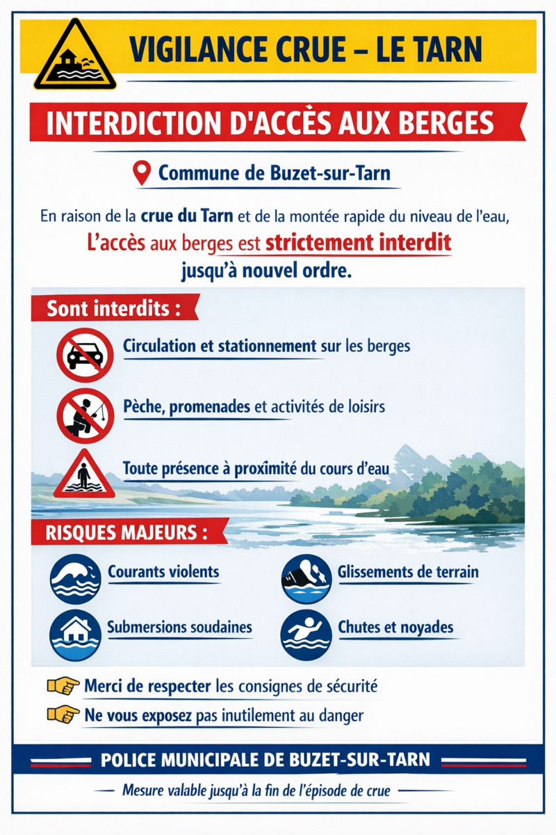 👉 En raison de la montée des eaux, il est demandé à chacun de faire preuve de la plus grande prudence, notamment à proximité des berges.