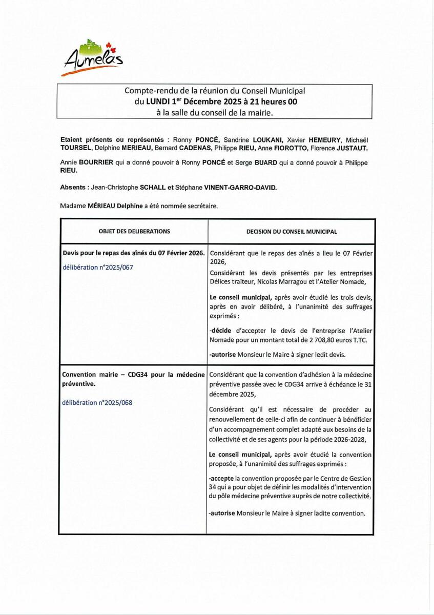 INFO MAIRIE - COMPTE RENDU DU DERNIER CONSEIL MUNICIPAL