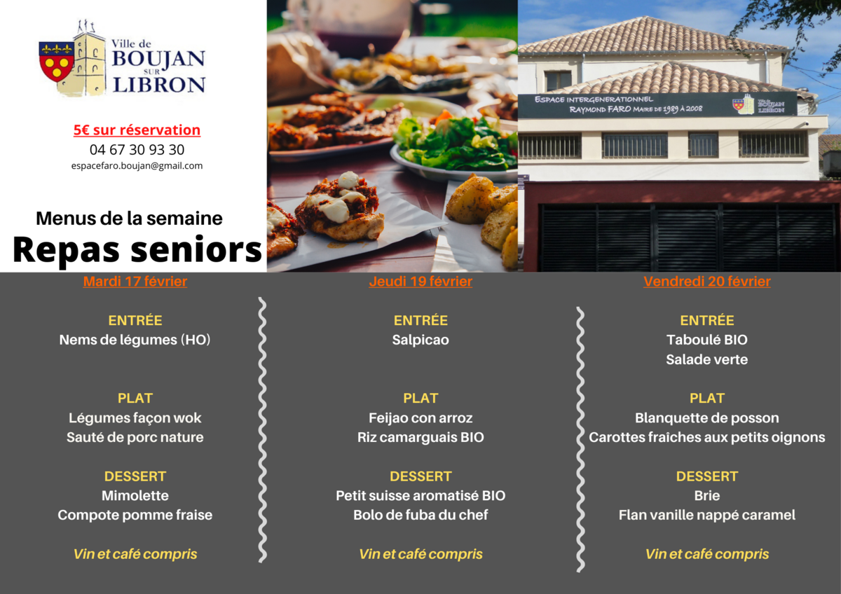 Menus des repas sรฉniors du ๐ฆ๐๐ซ๐๐ข ๐๐, ๐ฃ๐๐ฎ๐๐ข ๐๐ ๐๐ญ ๐ฏ๐๐ง๐๐ซ๐๐๐ข ๐๐ ๐๐ฬ๐ฏ๐ซ๐ข๐๐ซ ๐๐๐๐