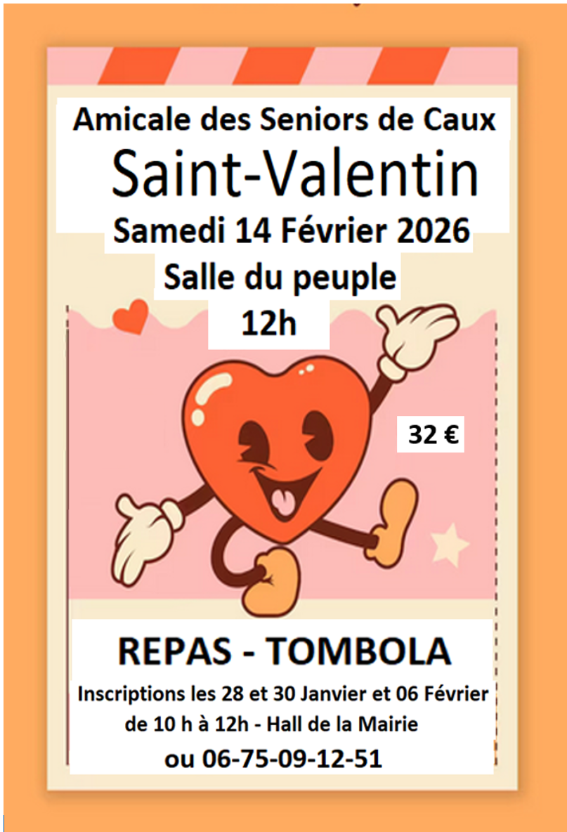 Seniors : repas St Valentin 14/02 midi, salle du peuple