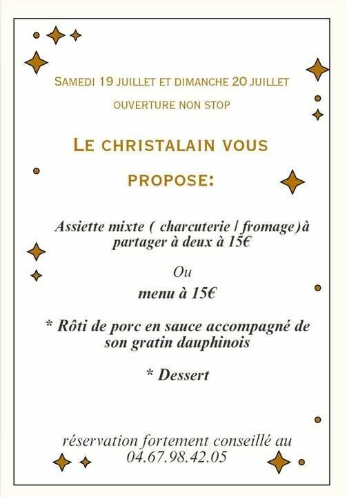 Le Christalain : ouvert tout le week-end 19 et 20 juillet