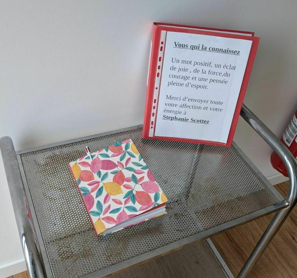 Le cabinet des kinés de Caux a mis à disposition un petit carnet afin de déposer des messages de soutien positifs et de prompt rétablissement pour l'infirmière Stéphanie Scottez.
