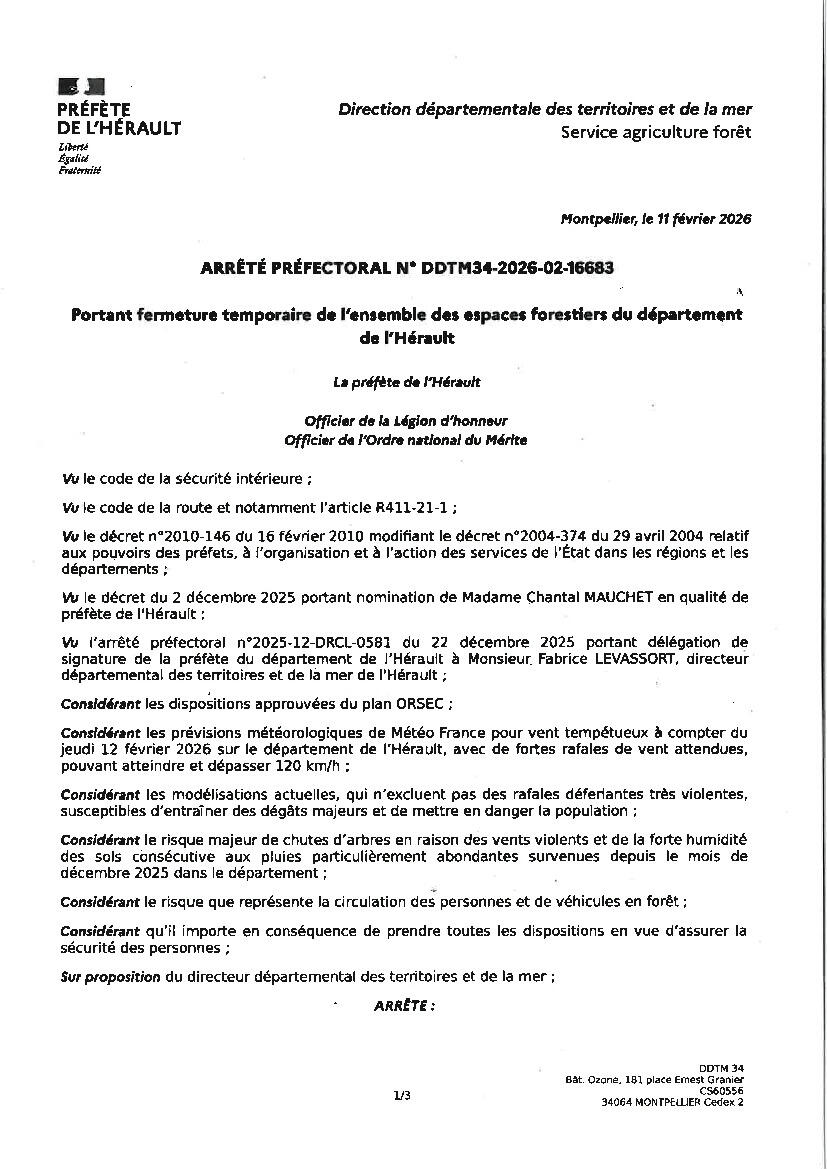 URGENT ARRETE PREFECTORAL : INTERDICTION ACCES FORESTIER
