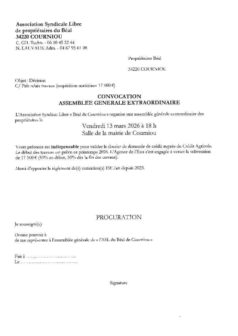 Ag Du Béal Vendredi 13 Mars 10/03/2026 PRÉSENCE OBLIGATOIRE: Votation pour le crédit du prêt relais. Salle du conseil à 18h.