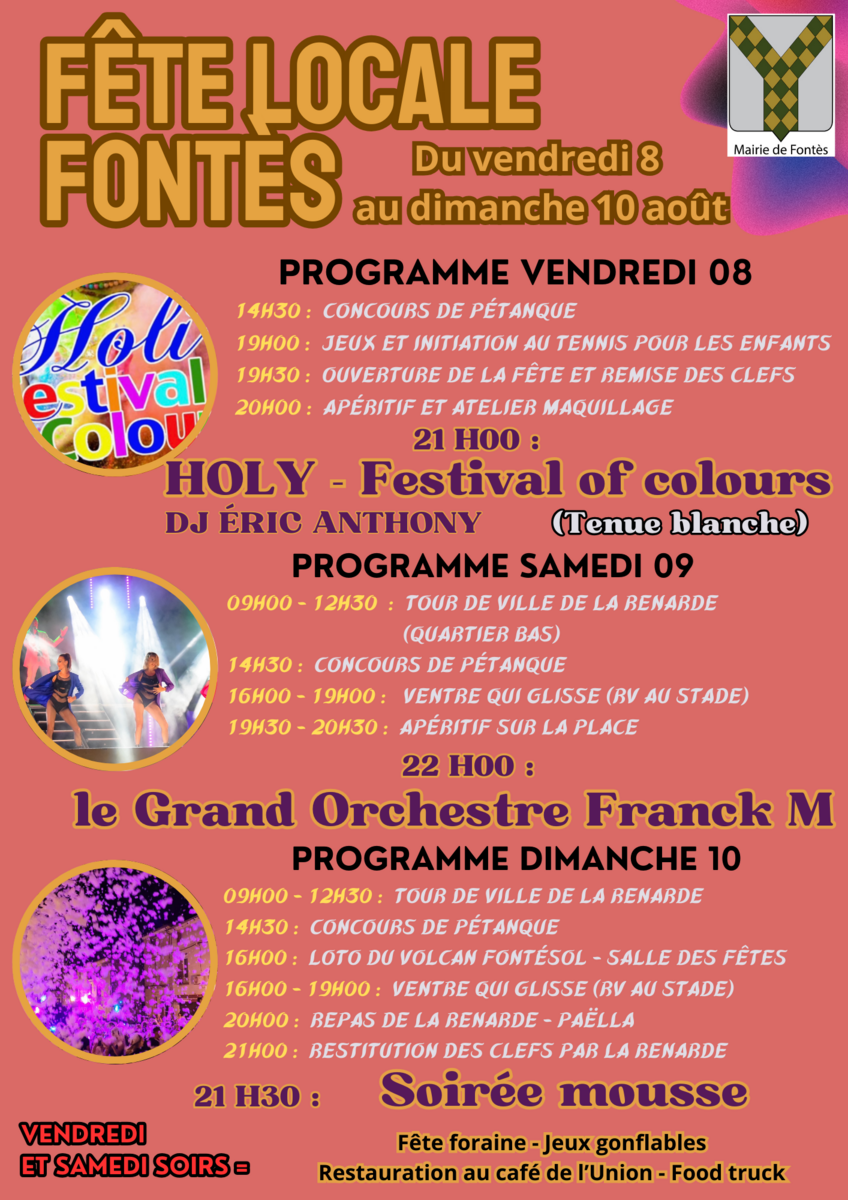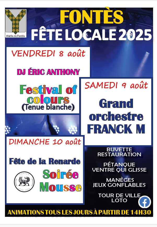 La fête locale se déroulera du vendredi 08/08 au dimanche 10/08, avec de nombreuses animations, et trois soirées musicales à l'ambiance garantie !