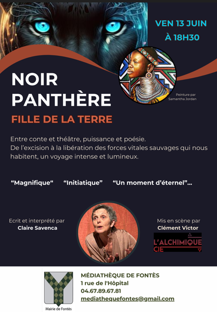 Claire Savenca, écrivaine et conteuse médecine, propose le spectacle Noir Panthère – Fille de la Terre, vendredi 13 juin à 18h30 à la médiathèque.