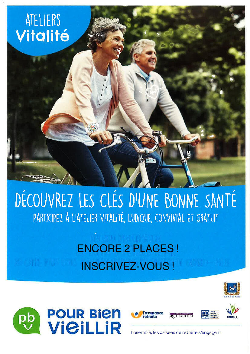 En collaboration avec le CCAS, la MSA vous propose six ateliers"vitalité" les lundis de 14h à 16h/16h30.