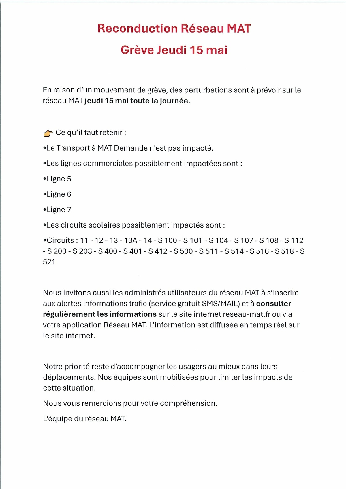 / Reconduction Grêve réseau MAT