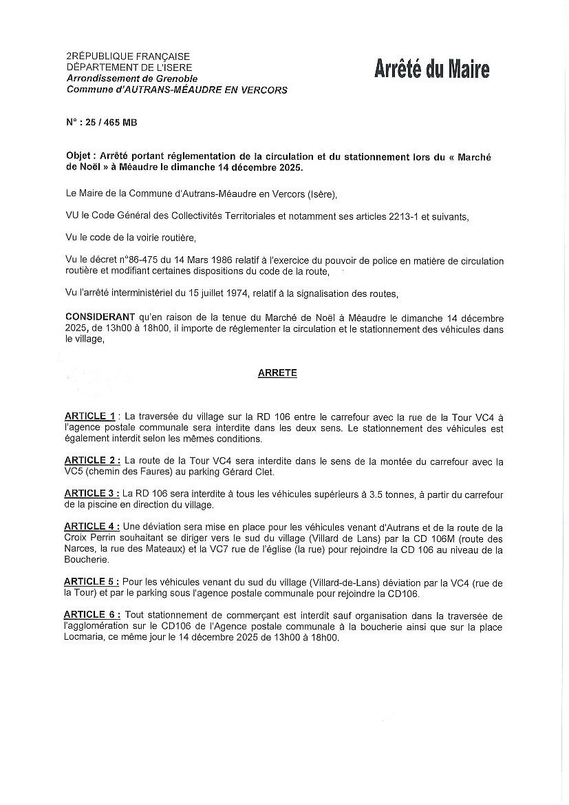 INFO TRAFIC MARCHÉ DE NOËL DE MÉAUDRE