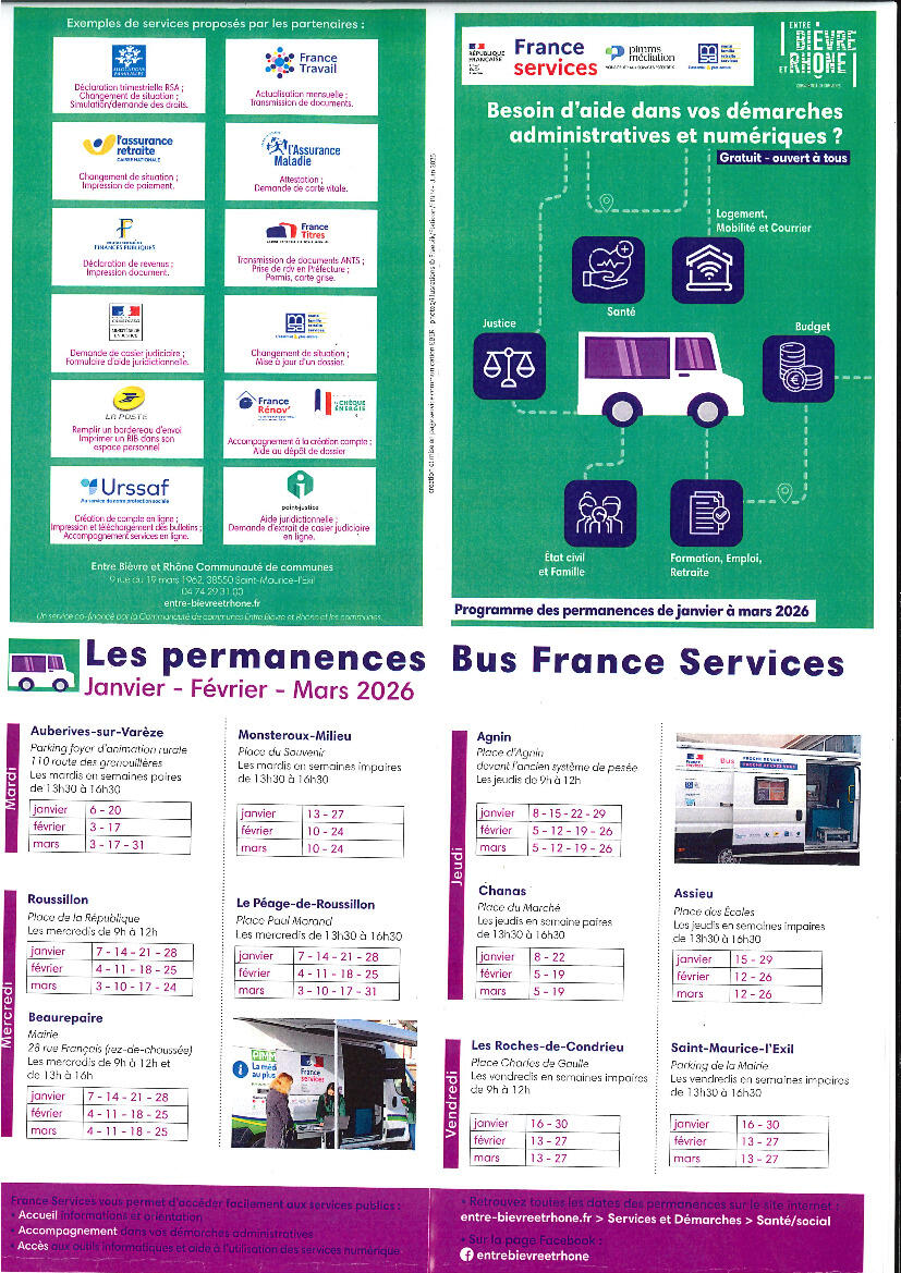 PERMANENCES BUS FRANCE SERVICES Janv-Fév-Mars 2026