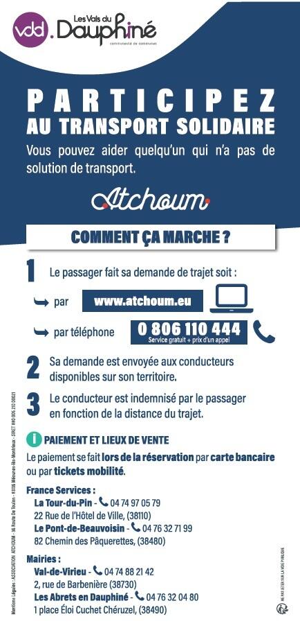 Pour encourager la solidarité et simplifier les trajets sur le territoire des Vals du Dauphiné, Atchoum met en relation des passagers et des conducteurs prêts à rendre service.