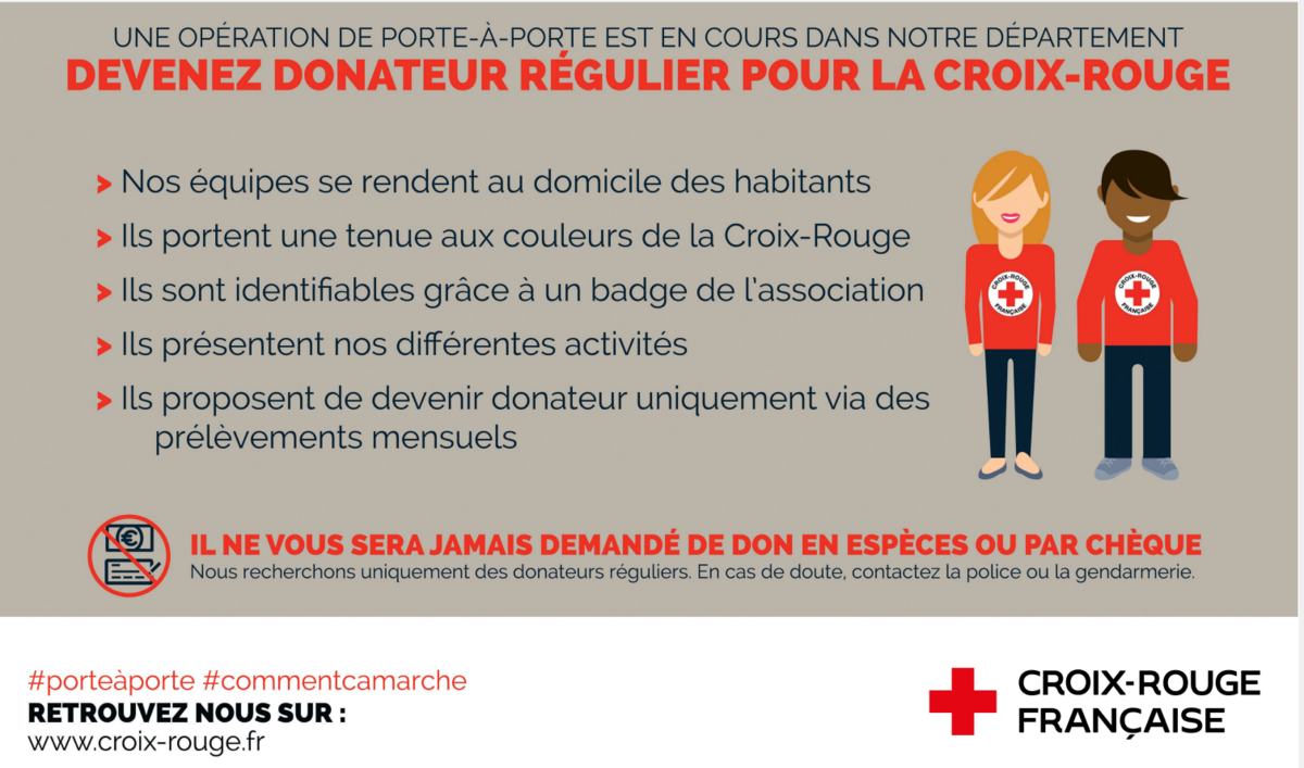 « Nous vous informons que prochainement et pendant plusieurs jours des équipes formées et averties de La Croix-Rouge française se rendront au domicile des habitants de notre commune. Elles seront présentes sur le terrain,