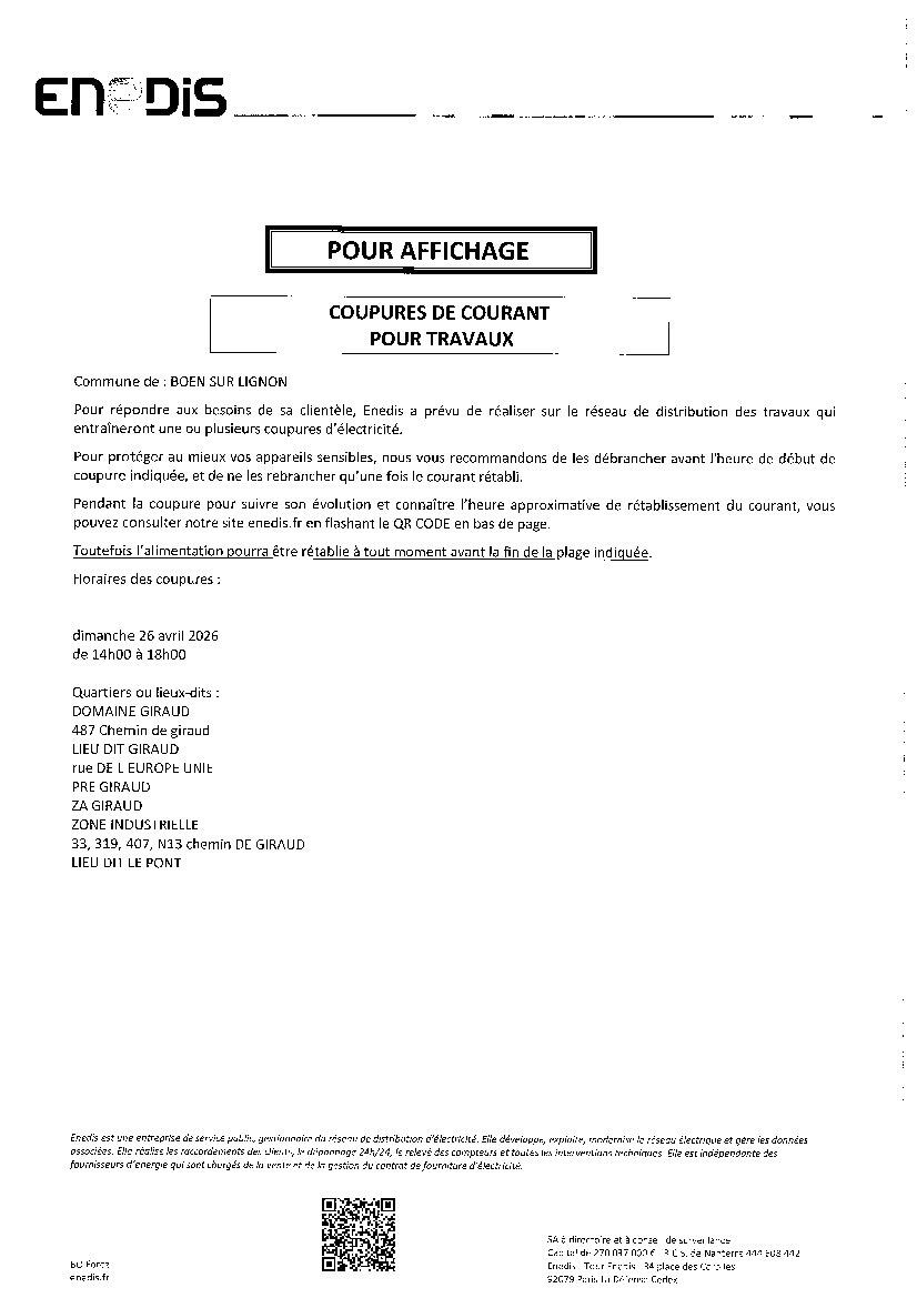Votre mairie / Actualités / Coupure de courant le dimanche 26 avril 2026
