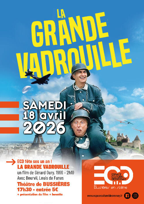 ECD fête son premier anniversaire et les soixante ans du film préféré des Français LA GRANDE VADROUILLE le samedi 18 avril à 17H30 ​​​​​​​au Théâtre de Bussières.