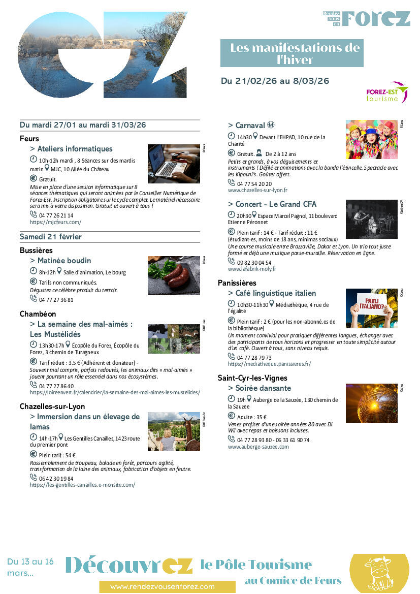 Les manifestations de Forez-Est - Du 21 février au 8 mars 26 26-02-20 Les manifestations de Forez-Est - Du 21 février au 8 mars 2026
