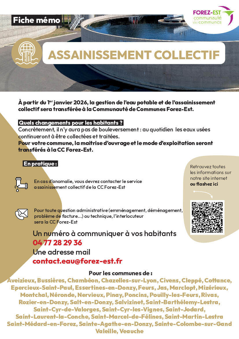 Vous trouverez ci-joint les numéros utiles suite au transfert des compétences eau et assainissement à la Communauté de Commune de Forez Est.