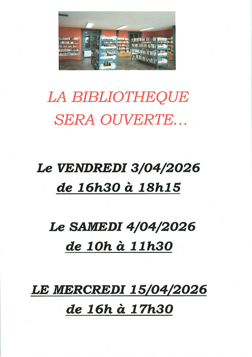 Votre mairie / Actualités / BIBLIOTHEQUE AVRIL 2026