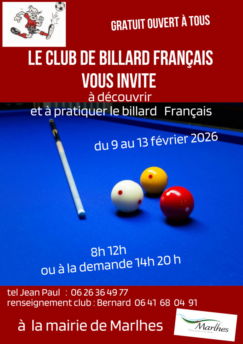 Votre mairie / Actualités / Billard Français du 9 au 13 février