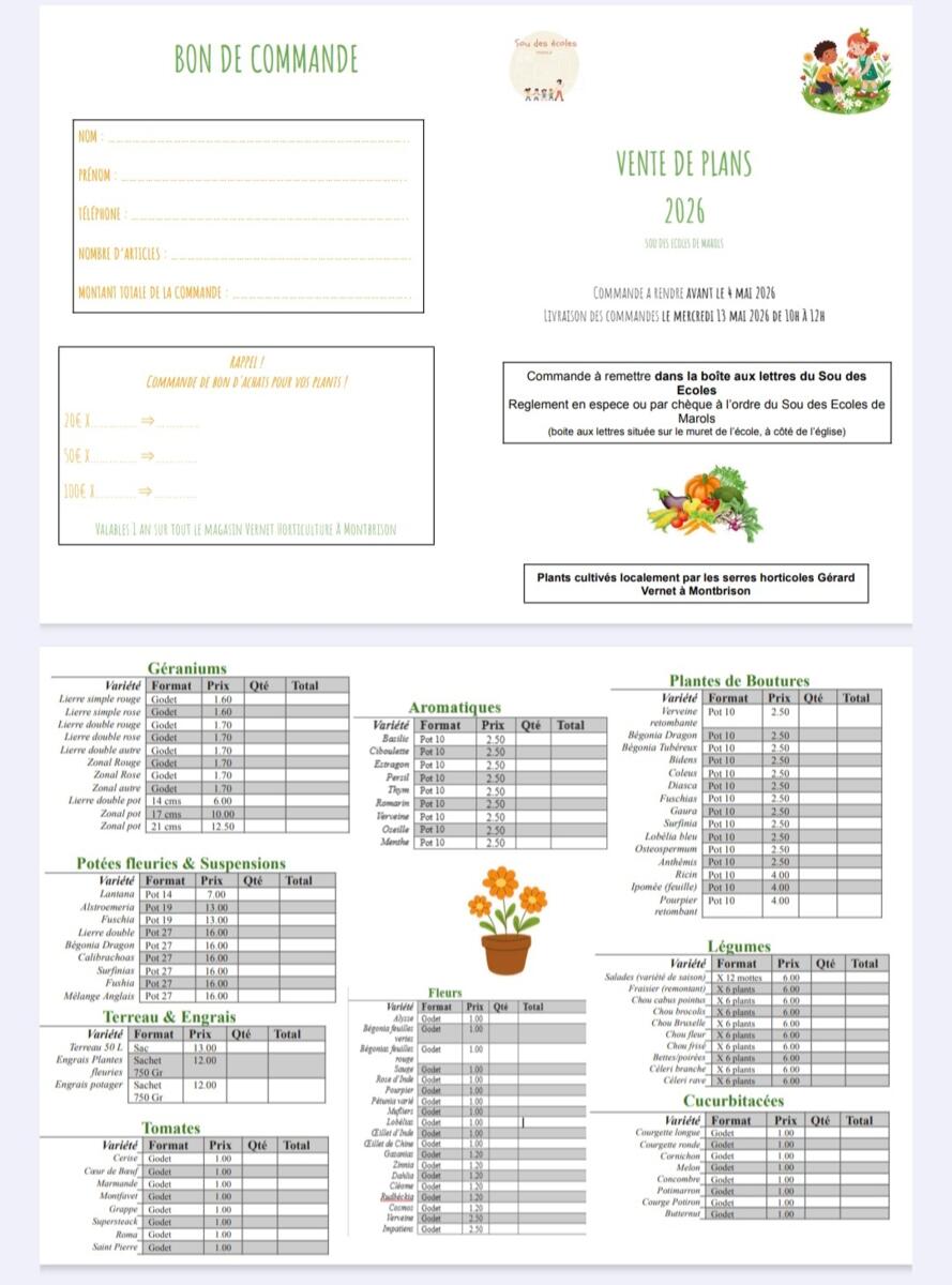 Le Sou des Ecoles organise une vente de plants qui aura lieu le mercredi 13 mai