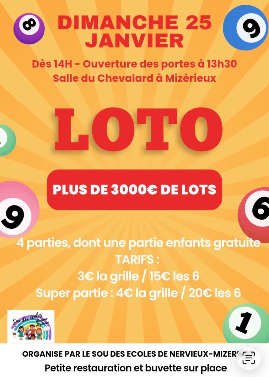 Loto organisé par le SOU des écoles Nervieux-Mizérieux.
