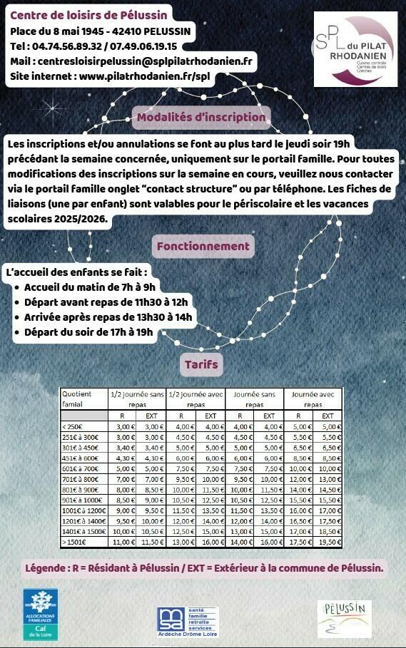 Contact & inscriptions : centresloisirpelussin@splpilatrhodanien.fr / 04 74 56 89 32 / site internet www.pilatrhodanien.fr/spl