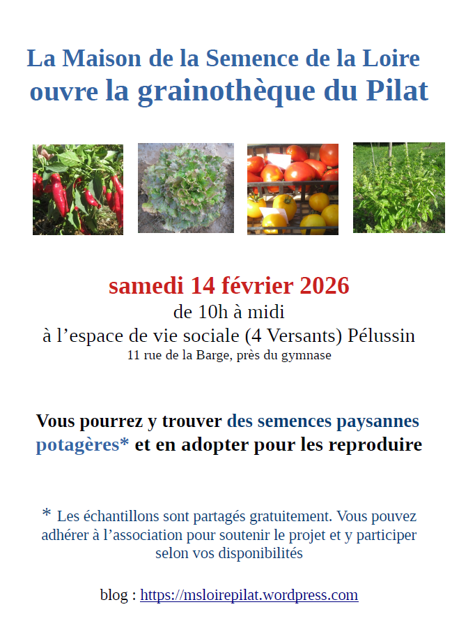 → de 10h à 12h - Ouverture de la grainothèque du pilat à l’EVS Les 4 Versants