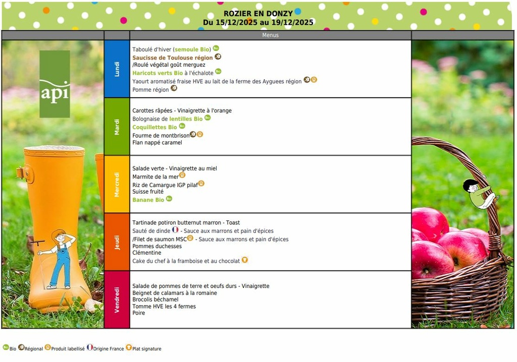 Voici les menus pour la semaine du 15 au 19/12/2025:
